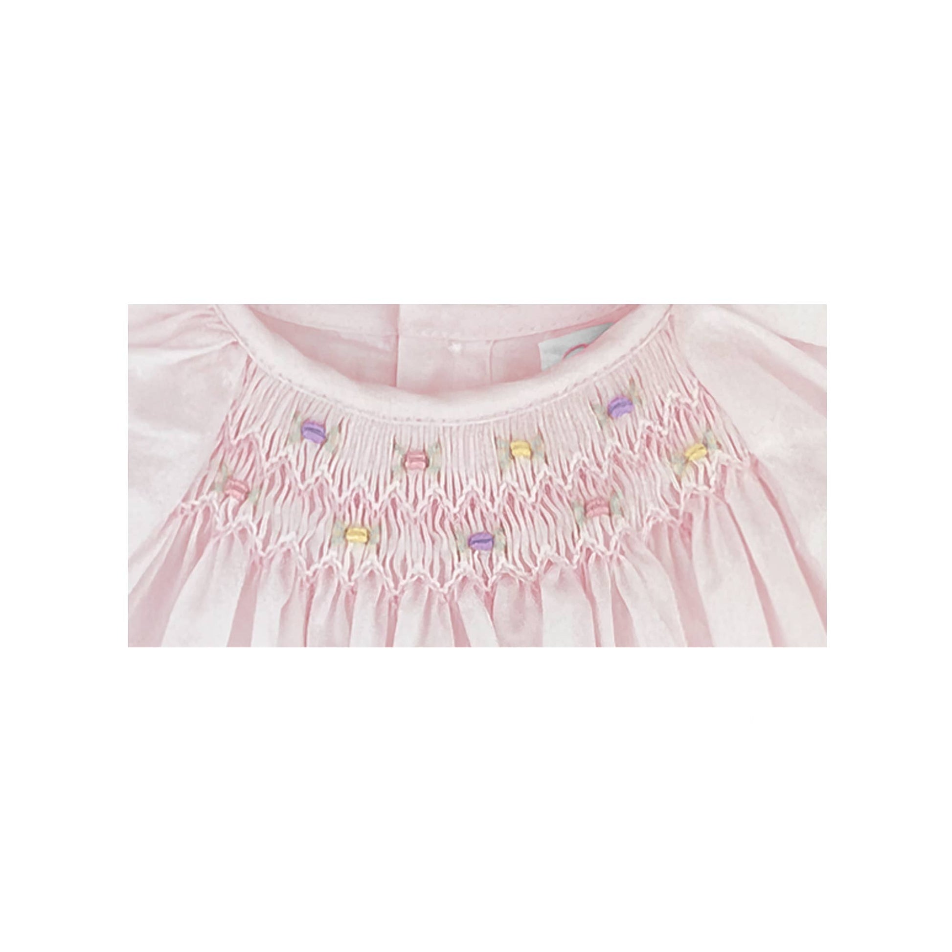 Featuring heirloom-quality handcrafted details like hand smocking and hand embroidered flowers at the hem, this dress is sure to become a treasured keepsake.